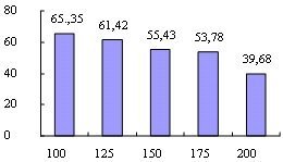 | 100 125 130 155 | 0,372 0,376 0,342 0,314 | 1,069 1,053 1,039 0,983 | 1,523 1,583 1,522 1,321 | 58,35 78,84 69,33 64,86 | 219 232 237 258 |